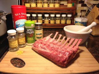 Rub this herb mix onto the entirety of the rack of lamb. Preheat oven to 450ºF while the rub rests on the lamb.