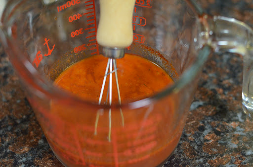 While preheating the oven to 375ºF, combine your hot sauce, ancho chili powder, and zesty ranch mixture (bought or homemade) with a whisk. Then place this mixture in a small saucepan with ghee to simmer.