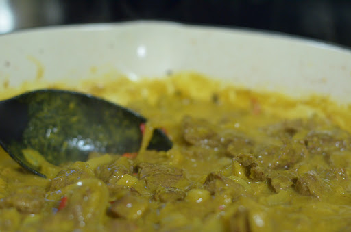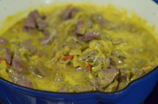 We worked on this recipe partially out of our love for curry and other similar cuisines, but also because we had 2 lbs of bison stew meat in the freezer that was ripe for cooking.  This stew looked especially inviting, and we are pleased with the results.  It’s worth mentioning that bison is much leaner than the meat that would typically be used in this dish (lamb), so if you don’t have bison, you might add a little time to the whole process.