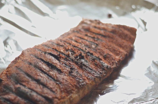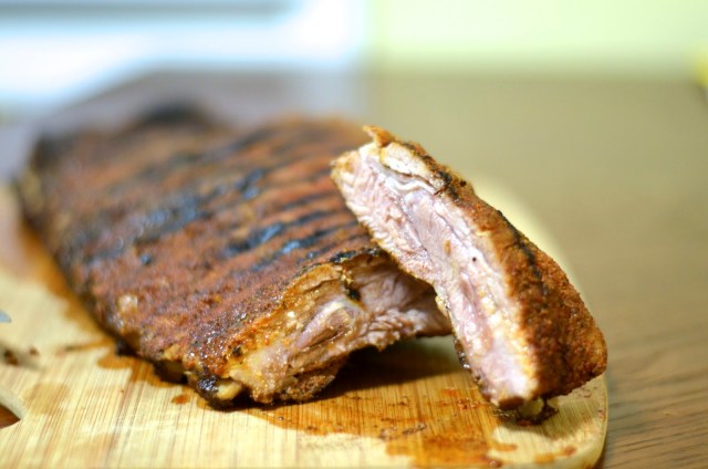 Since then I’ve always enjoyed good ribs. These are a take on a Memphis style rib rub. No need for sauce–the flavor is all packed in the rub, and they are still nice and tender. It might be a bit too much heat for those who don’t like spicy foods, so if you are a fan of more mild heat I would suggest lessening the cayenne pepper (probably in half). Otherwise, these ribs were fantastic.
