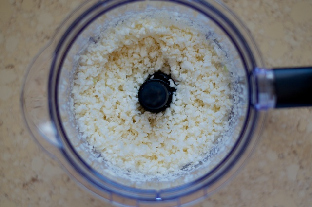 Cut florets out of your head of cauliflower and add into your ninja. This took two rounds with the medium-sized container.