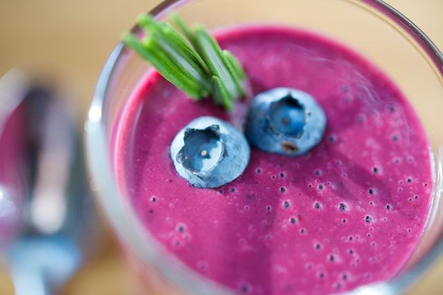 Method 2. Colors will start to bleed from the blueberries and make a pretty, light purple/pink solution. 3. Allow to cool to room temperature. We placed the mixture in the refrigerator for 30 minutes. 4. Add to your favorite blender or food processor, and blend on a medium speed until you have a consistent texture. 5. Serve immediately, or chill and then pour with a garnish of blueberry and rosemary sprig. BONUS, this recipe could also easily be a smoothie where you add in some protein, or frozen into popsicles—if you give it a shot, share with us through Facebook, twitter, or Instagram!Chilled Blueberry-Rosemary Soup
