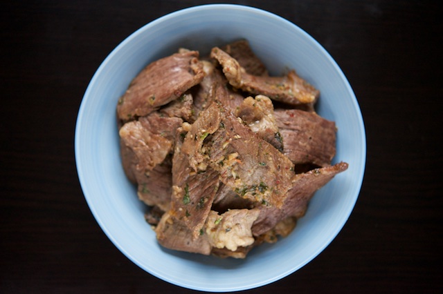 4. Pour mixture over beef and toss. Allow it to marinate at least four hours, preferably overnight.