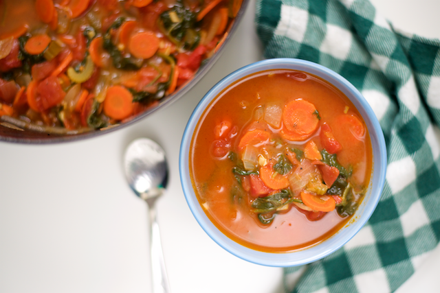 A few weeks ago, on a particularly cold and snowy day in Pennsylvania, I was on a work trip with a colleague visiting a college campus. We paused in the cafeteria for lunch and I came across vegetable Florentine soup. Normally, I would build a meal from the salad bar so I can control the ingredients. That said, I was chilled from walking around campus in the snow; so, even though I couldn’t verify the ingredients, I chose the soup. I ate around the noodles but otherwise thoroughly enjoyed the soup.