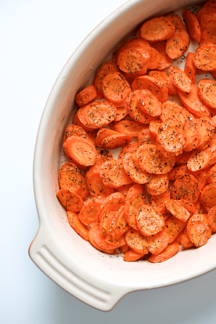 2. Toss carrots, oil, and seasoning in your baking dish. Roast for 40- 45 minutes until tender.