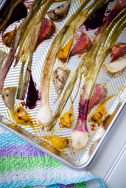 Meanwhile, there were also “rainbow” beets. Rainbow beets! I’m not a rainbows and butterflies and ribbons and bows kind of girl. That said, sunny spring days make me feel a little more colorful, and I love colorful food. How could I resist them? Onions and beets taste great together. I’ll admit, though, I was more excited that they would look great together in photos. We served this pretty little dish for dinner on Easter with smoked brisket and it felt perfectly appropriate. We hope you enjoy it!