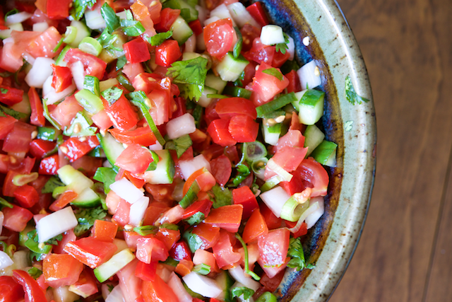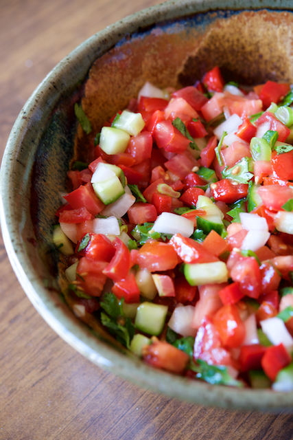 This vinagrete was such a great surprise, and reminiscent of a pico de gallo. Even though spring is avoiding us here in the Washington, D.C., area, the mix of fresh tomatoes, cucumber, oil, vinegar, and herbs is refreshing and simple. It is great on top of your favorite protein (meat, fish, chicken) or on its own as a side salad. We bet it’s great over scrambled eggs, too.
