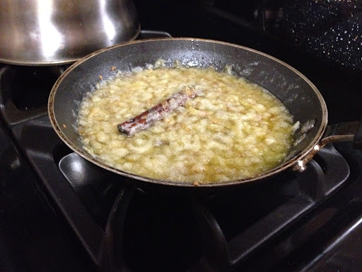 6. Heat the ghee in a skillet over medium-high.