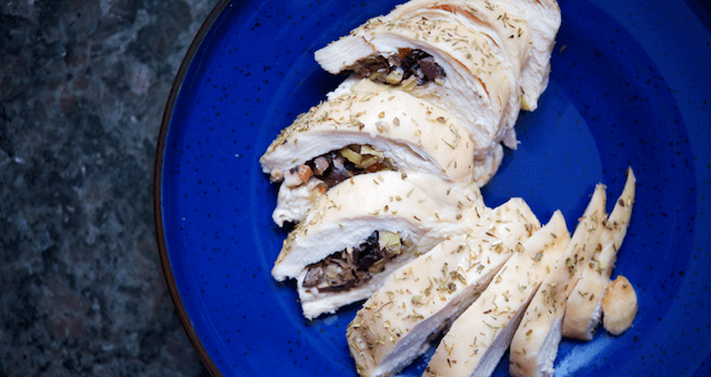 This week’s recipe is inspired by something Heather and I had when visiting my parents earlier this year. These chicken breasts were stuffed with a combination of kalamata and Spanish olives, marinated artichoke hearts, and garlic.
