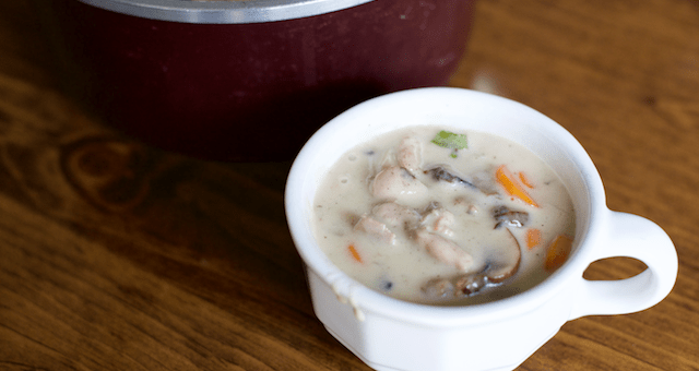 While we spent time relaxing with Grandma and Grandpa, we also decided to cook up a recipe. Chicken a la King has a complicated history, with competing ideas as to how it was created. What is known is that this recipe is made with chicken, a cream sauce, and vegetables, and often served over rice, bread, or pasta. We’ve created a dairy-free cream sauce and served this on its own. That said, you can easily put this over rice, cauliflower rice, or some homemade gluten-free bread.
