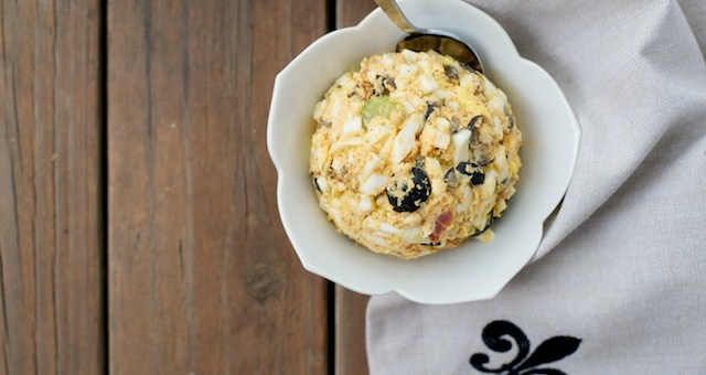 Egg salad is another one of those dishes that I grew up uncertain about. I liked the idea of egg salad, but the ingredients–specifically, the mayo–always made me shiver. Store-bought mayo just grosses me out. Always has. Probably always will. This egg salad skips mayo (homemade or otherwise) all together and add bacon. Bacon makes everything better. We hope you enjoy it!