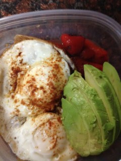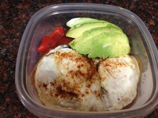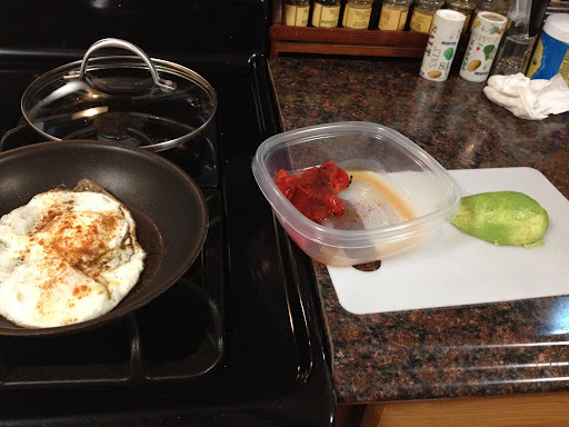 OK–so, what’s a girl to do other than the traditional scrambled eggs and bacon we have almost every morning… Eggs over hard? YES. Roasted red bell pepper on the side? Sure! What about those yummy avocados… I can’t resist. To make them work harmoniously, I just threw in some spices.
