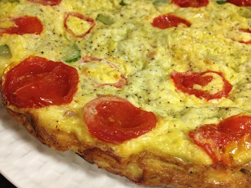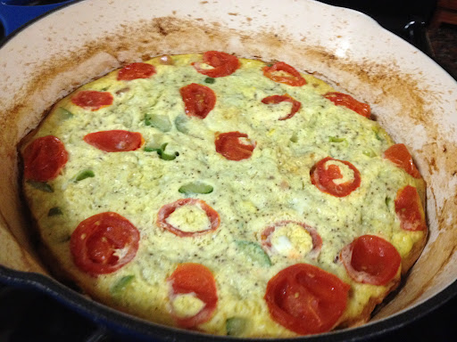 As you all probably know by now, we eat scrambled eggs and bacon A LOT. Like, nearly every morning for breakfast. We love eggs and bacon. Still, we like to switch things up sometimes, so last Sunday I created this delicious frittata with the spare ingredients I had laying around the kitchen.
