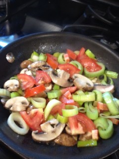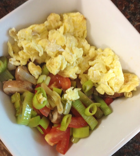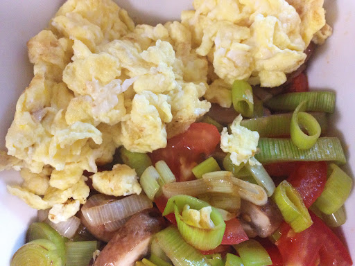Leek, Mushroom & Tomato Saute with Scrambled Eggs