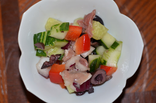 This antipasto was an attempt to recreate some of our favorite dishes that typically are mainstays at your favorite Italian/Mediterranean restaurant, without the cheese and pasta. As far as I’m concerned, it was a success––it didn’t last long in the house. We saved a small portion to share with family, and almost a week later, it was still crispy and crunchy, so I would definitely suggest this as a candidate for weekly meals or leftovers if you’re planning ahead. We had to do some shopping around to find clean proscuitto, but Applegate makes one we love, and we’ve been able to find their products pretty regularly at the local organic market, and even sometimes larger chain supermarkets. The benefit of this is how simple to put together. This took us maybe 15 minutes to make in total.