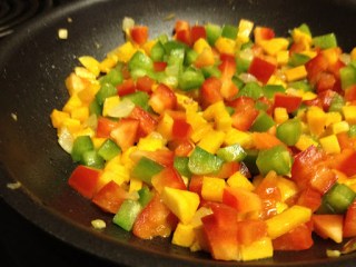 Step 2: Mix in the bell peppers. Cook for 2 to 3 minutes. This will get them tender, but not too soft. I like my bell peppers with just the slightest crunch to them.