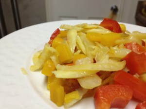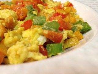 I’ve been making eggs every morning for the past week. They’ve been quite yummy–onion, red and green bell pepper, a little salt and pepper–but I wanted something different this morning.