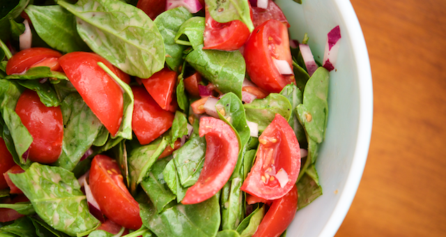 The salad he crafted is simple but packed with great flavor. It’s light and refreshing, but the meaty-ness of the Campari tomatoes makes it very satiating. It was so good, I had him make again on Sunday so I could eat it again. You can serve it as a side or mix in a protein (such as shredded chicken) to make it an entree in and of itself. The salad will be tasty right away, but letting it rest a while in the fridge helps the flavors meld and develop. We hope you enjoy this salad as much as our friends and we did!