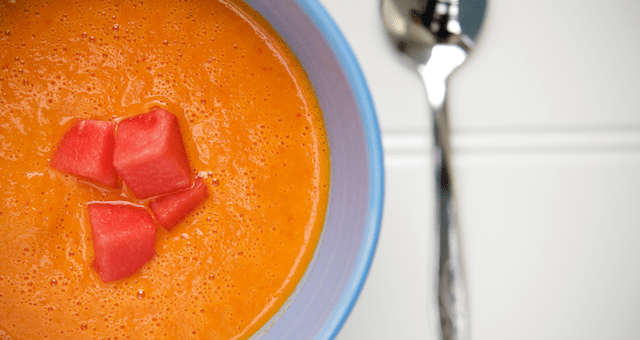This soup brings together my love for curries and my need for light, refreshing meal options that the whole family will enjoy. (Yes! Otto loves it, too. He’s such an adventurous eater.) It’s sweet and spicy, bright and (oddly) thirst quenching. Admittedly, it eats a little more like an appetizer than a main course; that said, you could easily serve it for lunch or dinner. Enjoy!