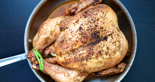 With a new baby, we haven’t had much energy to spend a lot of time in the kitchen. More than ever we’re looking towards big, batch cooking options to get us through the week. This weekend, I realized that we had not roasted a whole chicken in a while, and whole chickens are a great way to make multiple meals from one dish. This whole chicken recipe uses our take on the Latin American spice mixture, Adobo. It’s straightforward and delicious. Serve it with Cauliflower Rice and/or sautéed peppers for a complete meal. Leftovers can be shredded for lettuce boats or stir-fried with mixed vegetables.