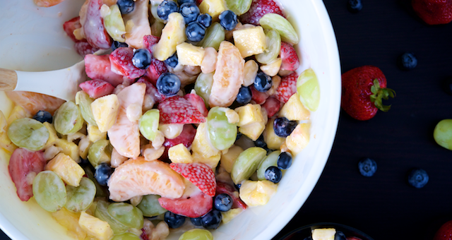 One of my aunts makes a summer fruit salad that everyone in my family calls “yum yum salad.” It wasn’t until sometime in my college years that I realized her salad is more commonly known as ambrosia salad. As a kid, I loved this salad. It felt like having dessert during dinner. What kid doesn’t like that?