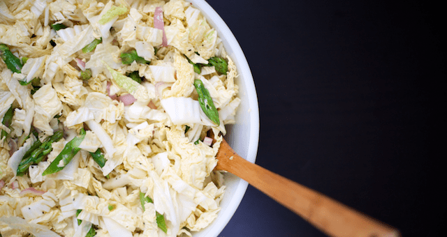 This week, we put together a light salad with Napa cabbage and blanched asparagus. If you’re feeling the need to bump up the protein, kick it up a notch with chicken, hardboiled egg, smoked salmon, or all three! If you give it a shot, let us know in the comments.