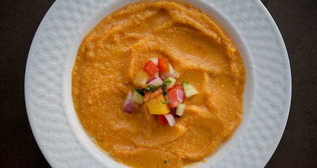 It’s late summer and that means the heat and humidity are high in the metro DC area. Still, with fall just around the corner, I have been eager to enjoy the comfort of soup. This weekend, we created a slightly sweet and tangy gazpacho. It’s hearty but smooth and bright, so you can eat it as an appetizer or a meal. We hope you savor our sweet potato gazpacho as much as we did!