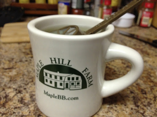 I didn’t actually follow the recipe. That would be too easy! :-p Instead, I just tore up enough sage leaves to fit into my tea strainer, heated some water, and let it steep. The recipe lists lemon and honey as optional additions. Honey is obviously not a Whole30 menu item, and I wanted to experience the flavor (and hopefully the helpful effects) of this tea in its original form so I didn’t add the lemon either.